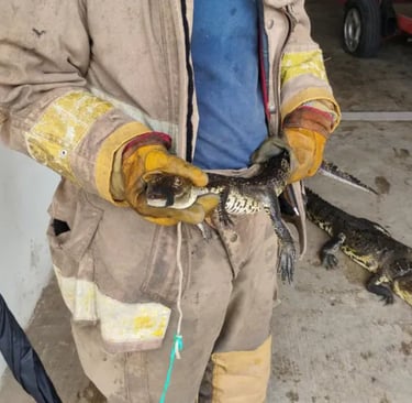 Bomberos de Ciudad Madero capturan tres cocodrilos tras desbordamiento de lagunas