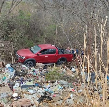 Una camioneta tipo pickup cayó a un acantilado de aproximadamente cinco metros de profundidad,en la Carretera Federal 80, en El Mante Tamaulipas, dejando a cuatro personas lesionadas.