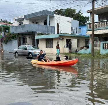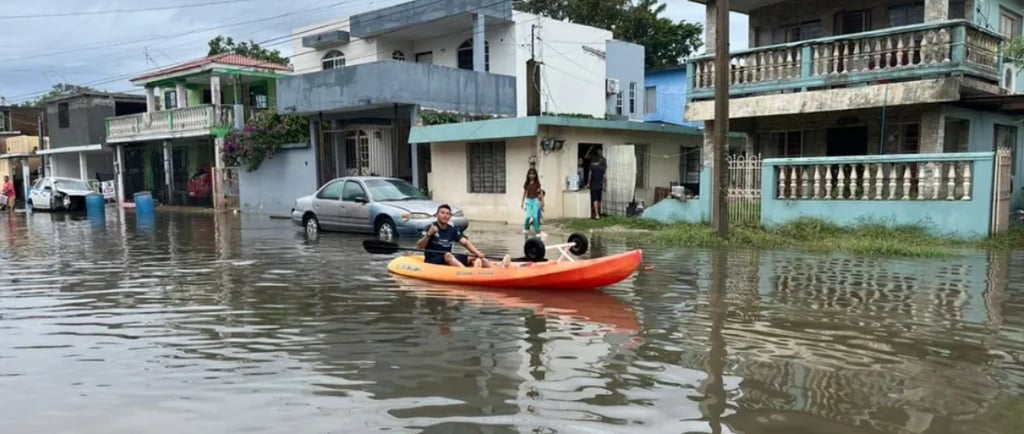 "¡Cuidado con la alcantarilla!" advierte hombre en kayak mientras 'navega' en calles de Ciudad Madero