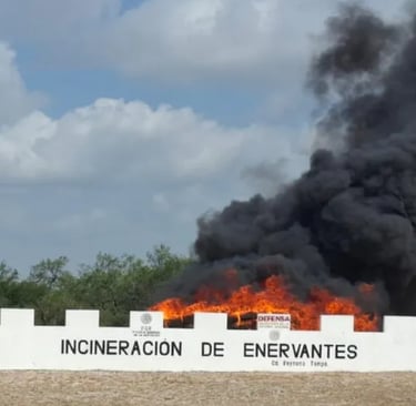 Se llevó a cabo la incineración más de una tonelada de diversos narcóticos en la ciudad de Reynosa, Tamaulipas por parte de la Fiscalía General de la República en coordinación con elementos de la Secretaría de la Defensa Nacional.