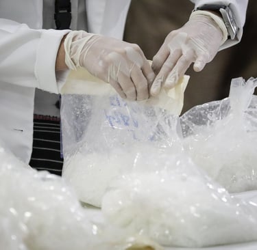 En el lugar se halló equipo para la producción de drogas sintéticas, así como 8.2 kilos de metanfetaminas y: